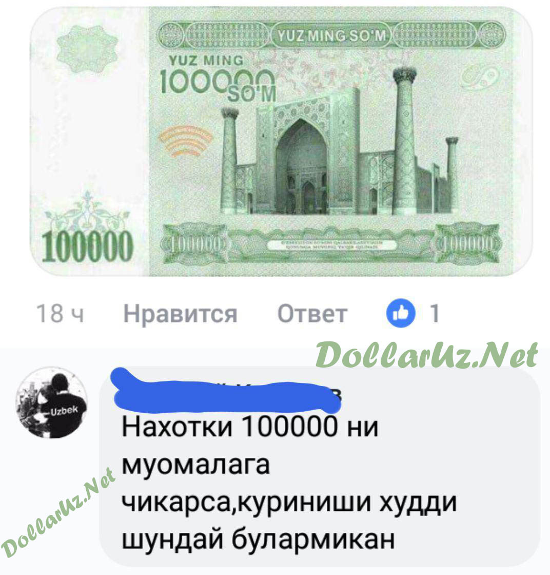 O'zbekiston Respublikasi Markaziy banki shu yil ham yurtimizda naqd pul muomalasini yanada takomillashtirish va qulaylashtirish borasida ishlar davom etishini ma'lum qildi. Qulaylashtirish borasida yanada yirikroq banknotani muomalaga chiqarish masalasi ko'rib chiqilmoqda. Bundan ko'rinib turibdiki 100 ming so'mlik banknota chiqib qolsa ajab emas.